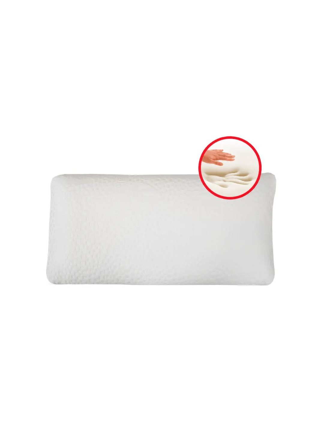 Almohada viscoelástica 70cm diseñada para ofrecer soporte ergonómico y confort térmico en espacios reducidos durante tus aventuras.